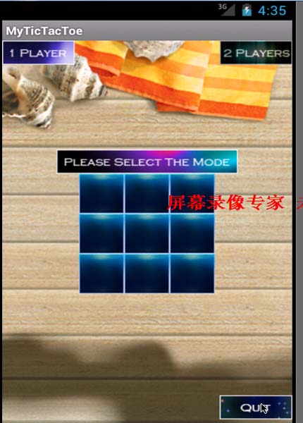 编号Android002:井字棋游戏是一款简单的连珠游戏,有点象五子棋。游戏主界面包括了开始游戏和游戏帮助菜单,并且可以选择双人或者单人进行游戏。该游戏利用安卓技术开发实现,采用了相关的人工智能的算法和游戏算法,实现了复杂的游戏编程思路,是一款不采用数据库开发的单机游戏,为高校安卓毕业设计的开发,游戏的设计提供了一个很不错的参考资料,也为安卓初学者提供了一个很好的学习平台,以下是该游戏的基本功能介绍: